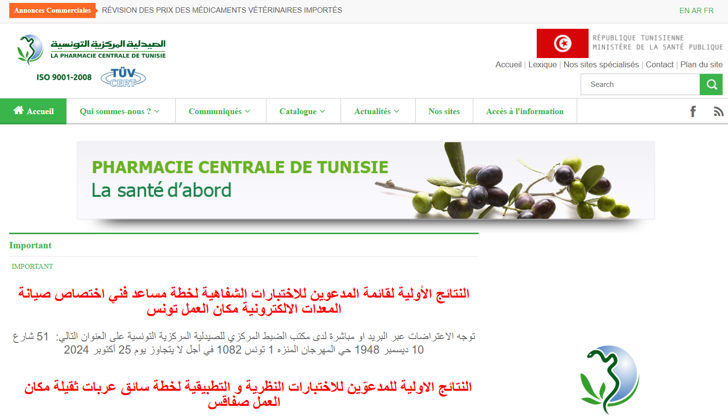 Mise en place intégration et hébergement du site web de la pharmacie centrale de la tunisie